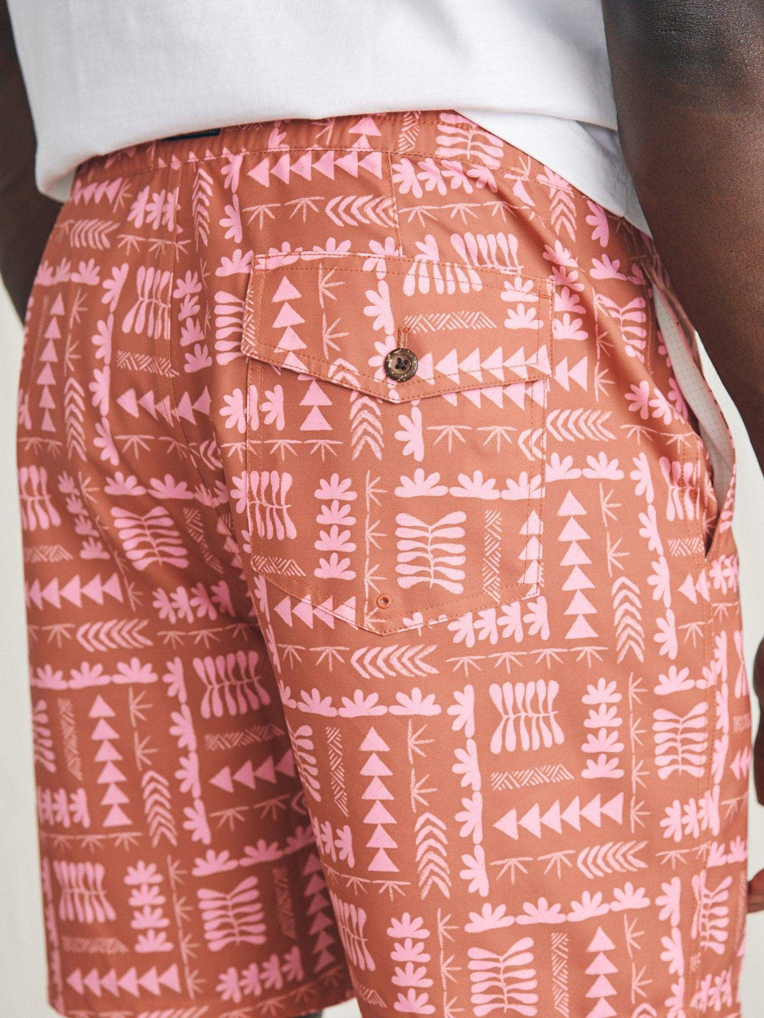 - Detail: Two side seam pockets. Hidden zipper pocket inside wearer’s left front pocket. Classic boardshort drawcord tie closure. Patch pocket at wearer’s right backside with button flap closure. Mesh piecing at pocket bags for easy water drainage. Button fly closure.