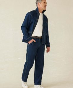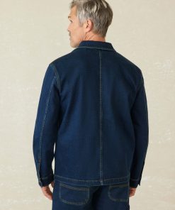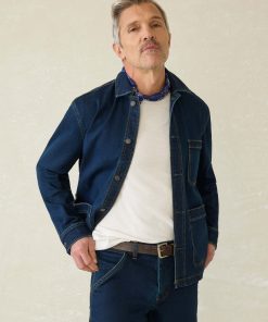 - Detail: Three-pocket styling. Work-wear jacket collar. Shank front closure. Straight hem.