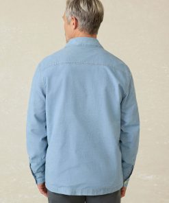 - Detail: Shirt collar. Button front closure. Straight hem. Button-flap pockets at the chest. Welt pockets at the hip.