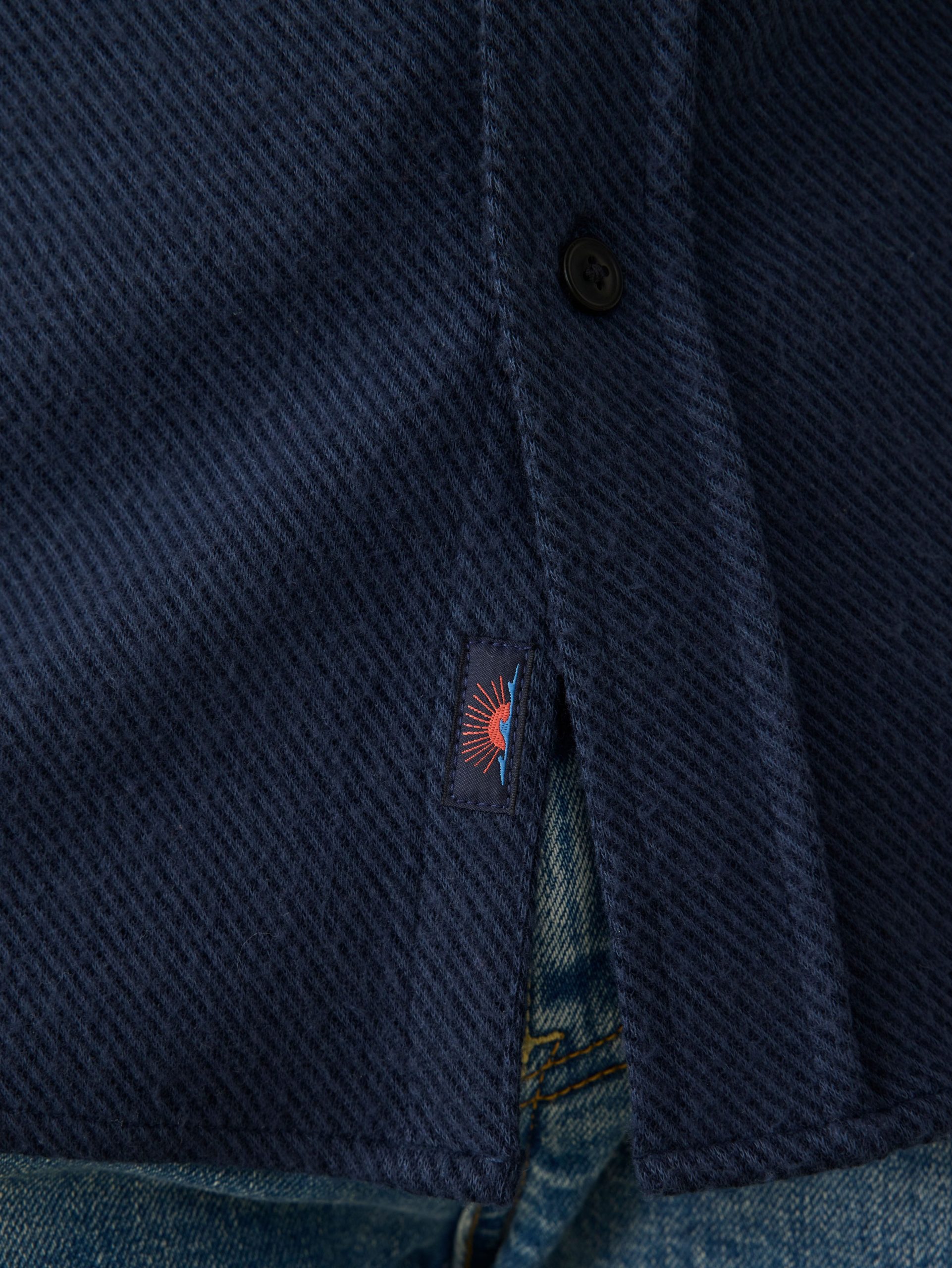 - Detail: Spread collar. Button front and cuff. Two chest buttoned patch pockets. Shirttail hem.