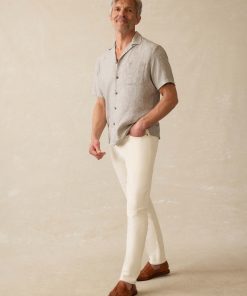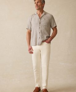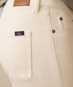 - Detail: Classic 5-pocket Pant. Metal shank and fly zipper opening. Faherty logo back patch at wearer’s right.