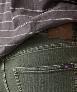 - Detail: Classic 5-pocket Pant. Metal shank and fly zipper opening. Faherty logo back patch at wearer’s right.