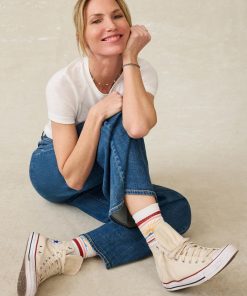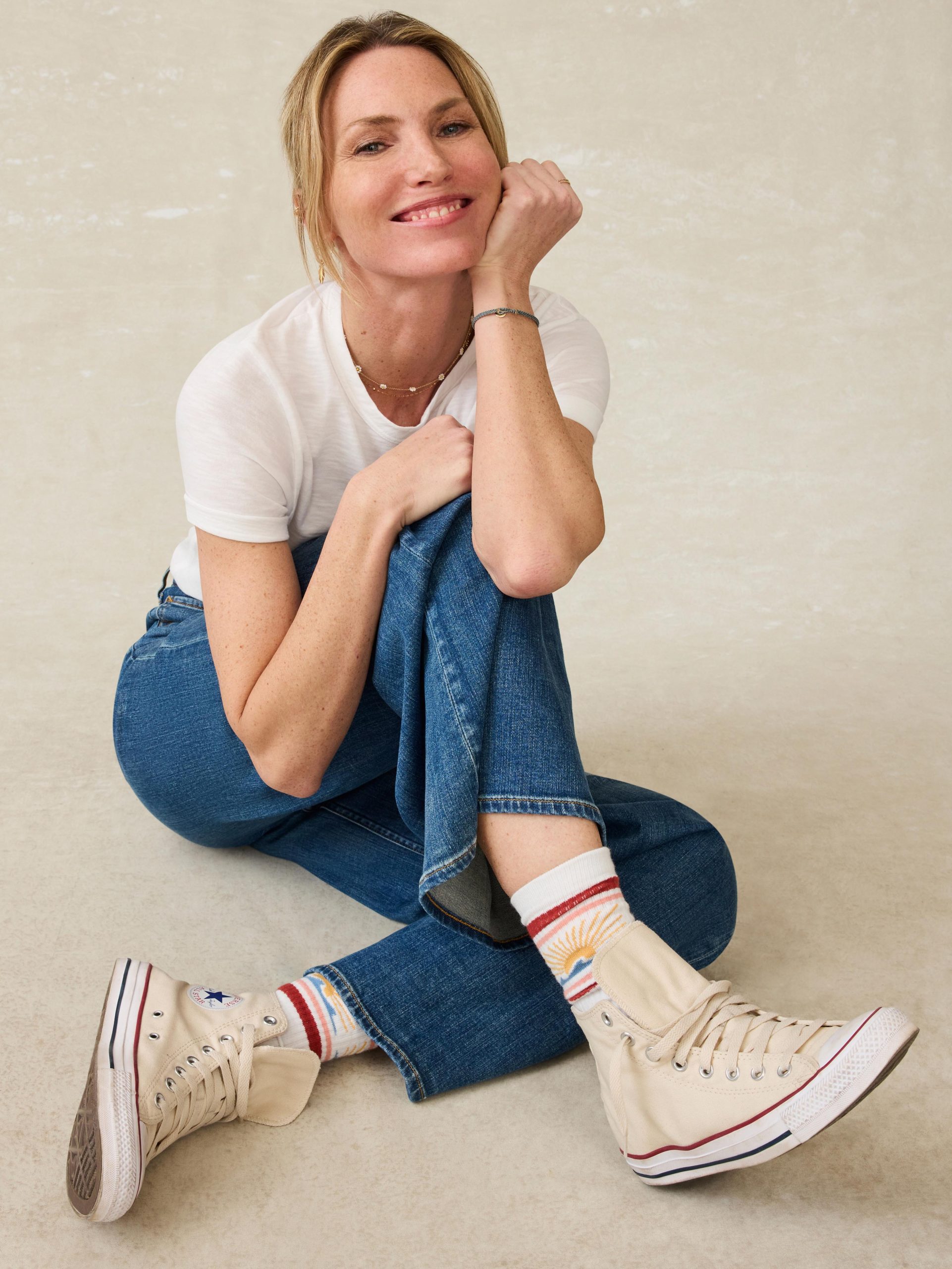 Knit in the USA, these comfy socks featuring our sun and wave motif were meant to peek out and be seen. Wear them slouchy for a casual-cool look or pulled up for a retro fit.