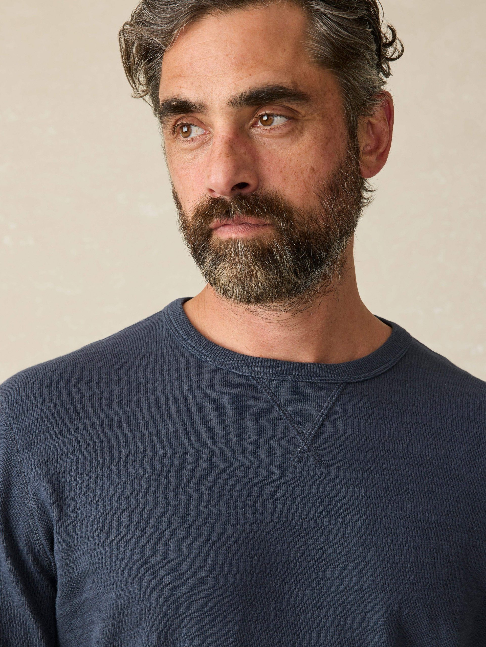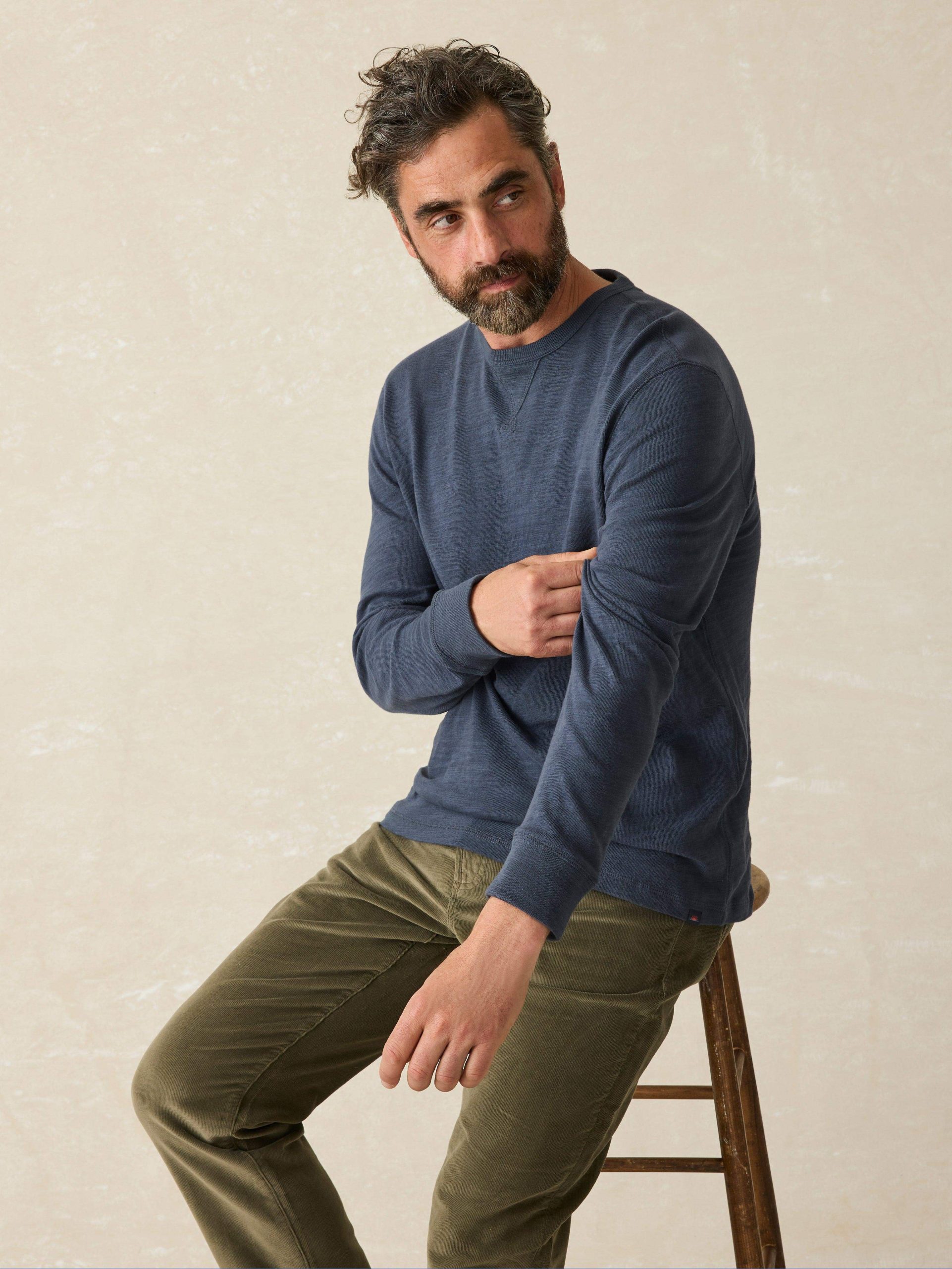 Our slub knit fabric is crafted from high-quality American-grown cotton, combed for exceptional texture and softness. The perfect layer does all the work of a sweatshirt — featuring a classic relaxed fit, knit ribbing at the collar, cuffs, and hem — without the added weight. Get one, and feel what we’re talking about.