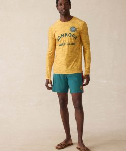 - Detail: Self fabric bound collar. Printed main label at back neck. Thumb loops at sleeve openings. Silicone Sun and Waves label at wearer’s left front hem. Soft microfilament thread for comfort next to skin.