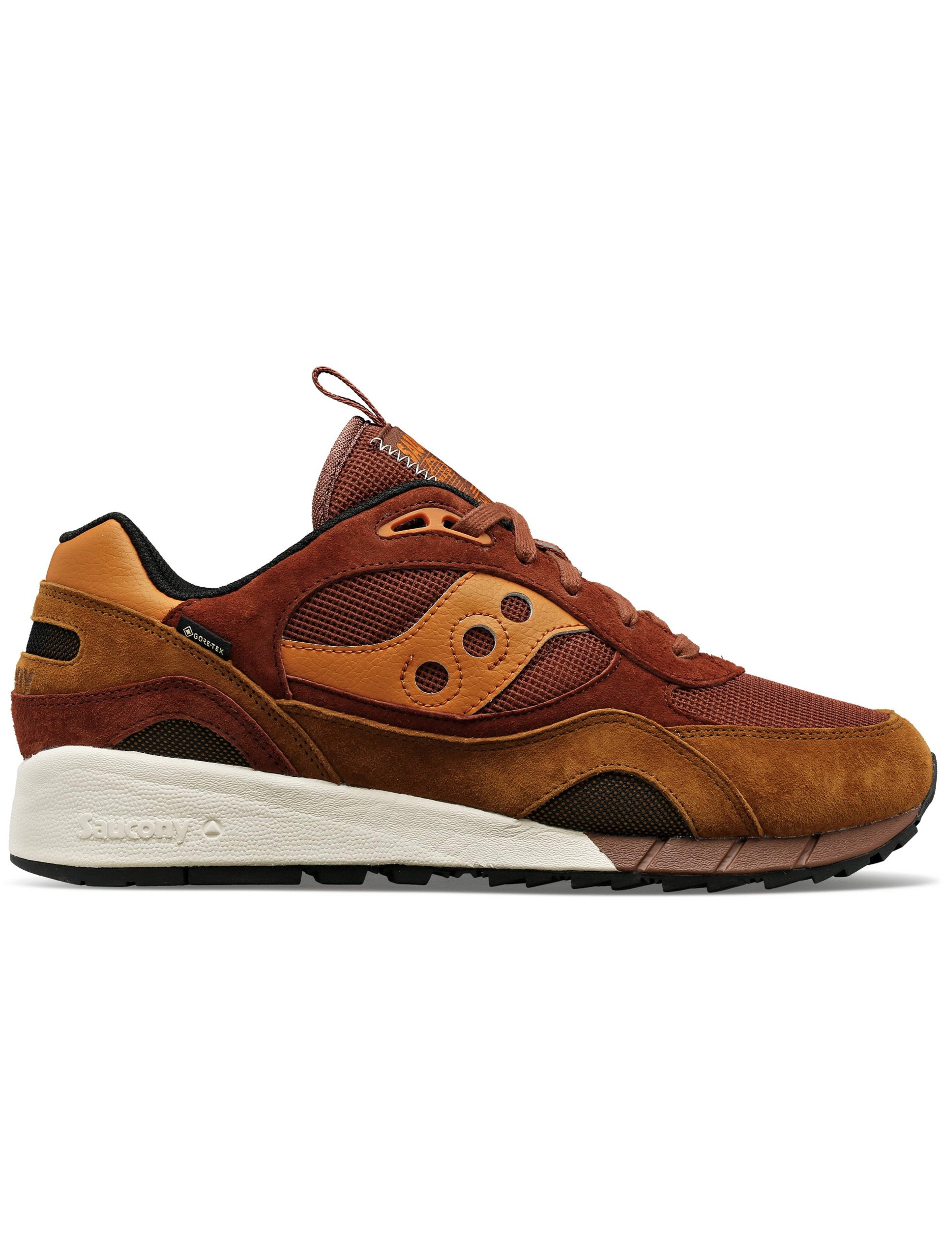 - Detail: This is a classic you can wear in questionable weather. The Shadow 6000 GORE-TEX takes everything you love about the ’91 shoe and gives it a protective shield to help block out the cold and wet. Water-repellent suede hits and outdoor-inspired colors offer extra form and function. And in case you forgot or got worried about stepping out too soon, there’s GORE-TEX branding to remind you. Premium sock liner Ionic cushioning system Polyurethane Triangular lugs. Shock-absorbing EVA midsole XT-600 triangular lug rubber traction outsole
