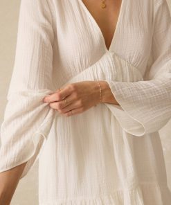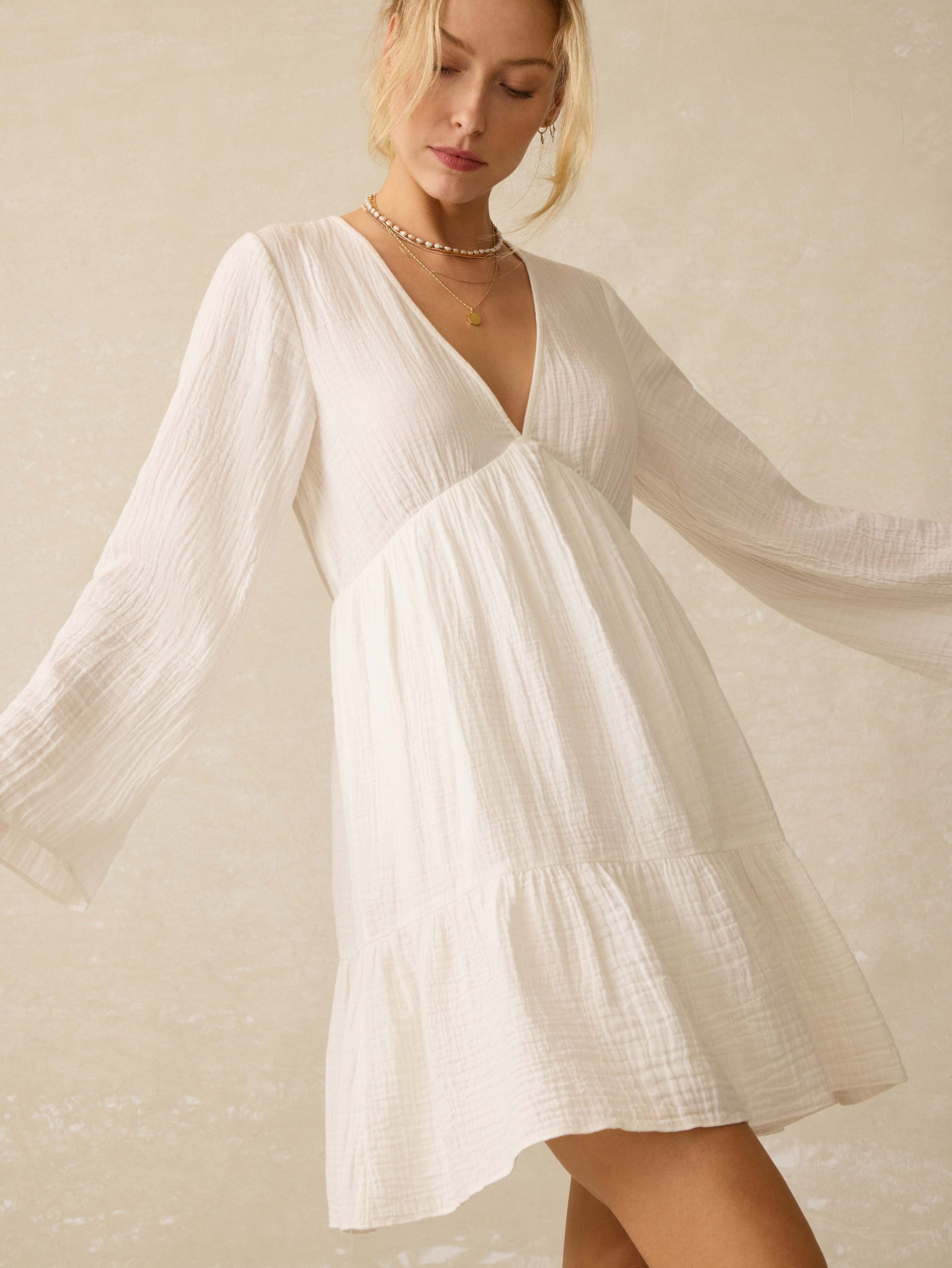 This flowy mini dress is crafted from soft gauze cotton that feels like a warm breeze. Shirring at the bodice adds texture, while a tiered skirt and billowy sleeves bring all the effortless movement. Lightweight, breathable, and sun-kissed ready—it’s the kind of piece you’ll reach for all season long.
