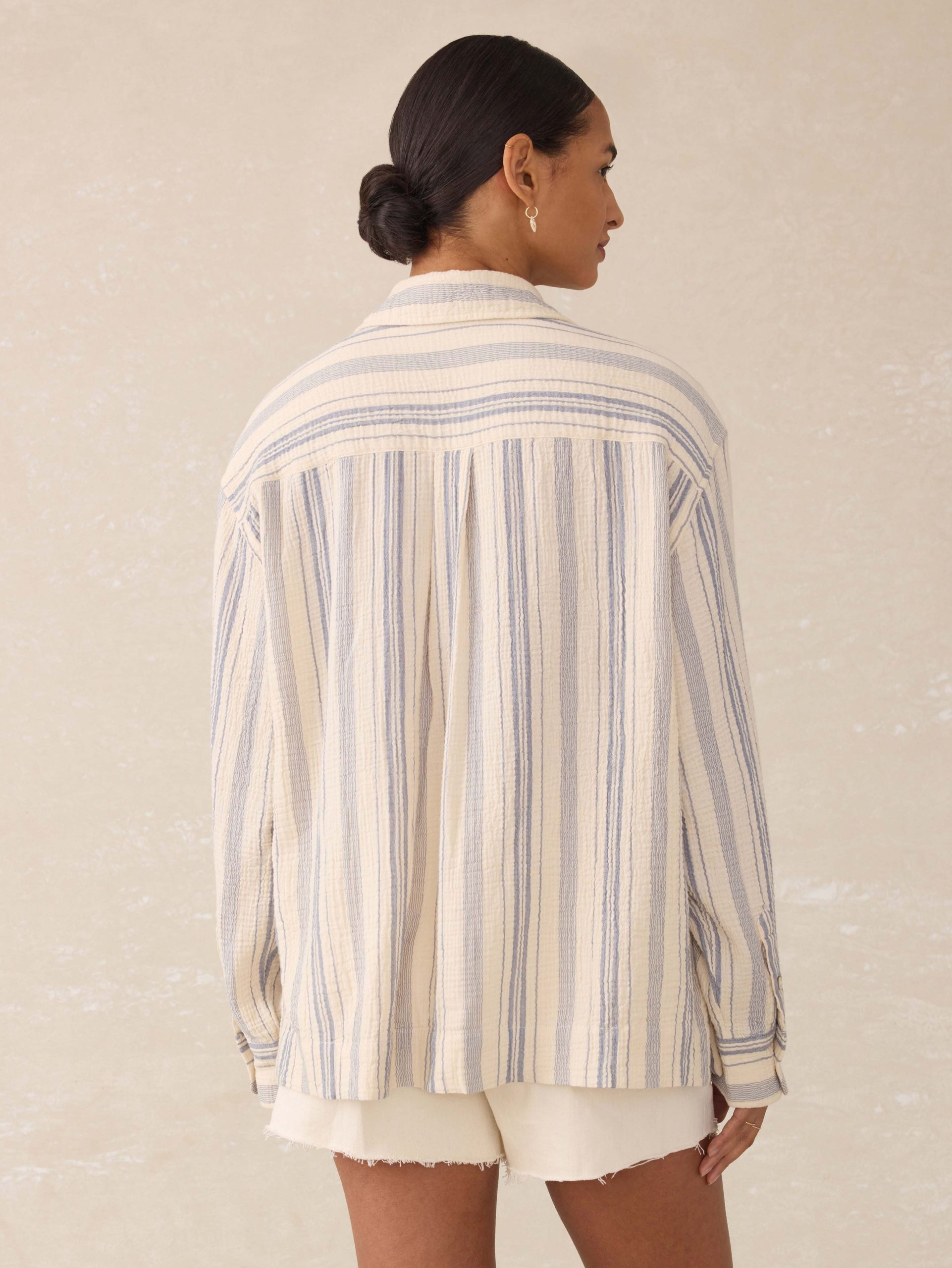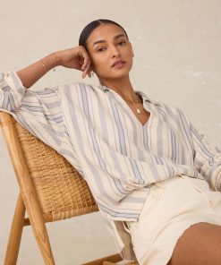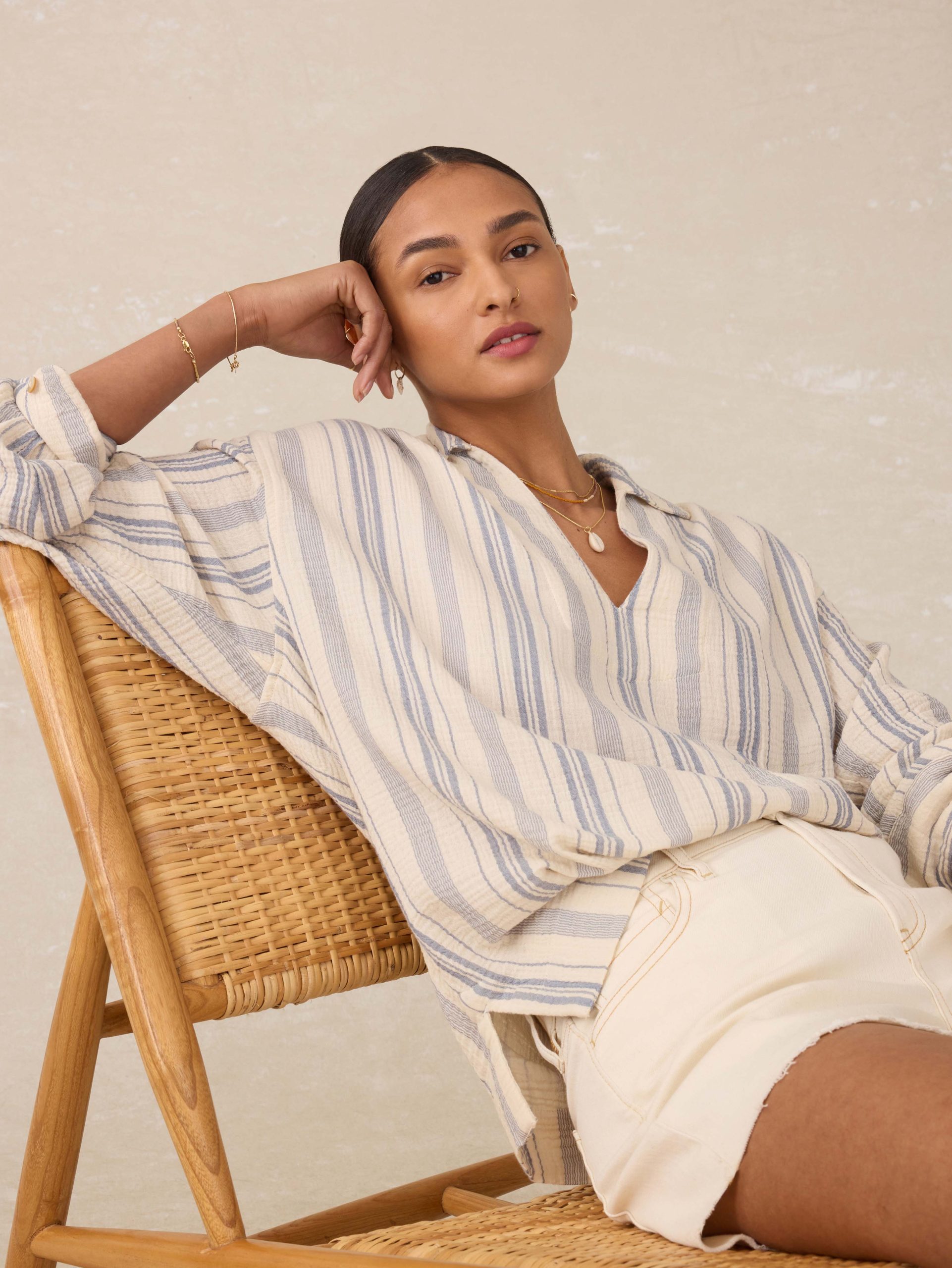 We took inspiration from vintage U.S. Navy uniform tops for this timeless shirt that’s perfect for lazy days by the shore. Crafted from a breathable cotton and linen blend, it delivers both durability and a soft touch. With its clean lines and relaxed oversized fit, this shirt adds a playful charm to any outfit, making it your go-to for effortless coastal style.
