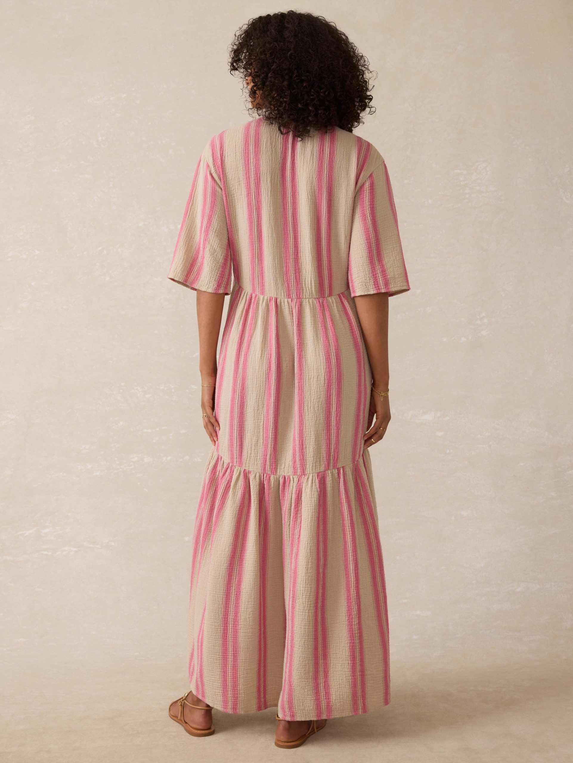 Crafted from the softest cotton gauze, this flowy maxi dress is light, airy and endlessly comfortable. With delicate shirring and a tiered skirt that catches the breeze just right, it’s equal parts relaxed and romantic. Easy to slip on, impossible to take off—it’s your new warm-weather favorite.