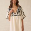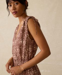 - Detail: Functional ties at shoulders, with encased elastic at waistband.