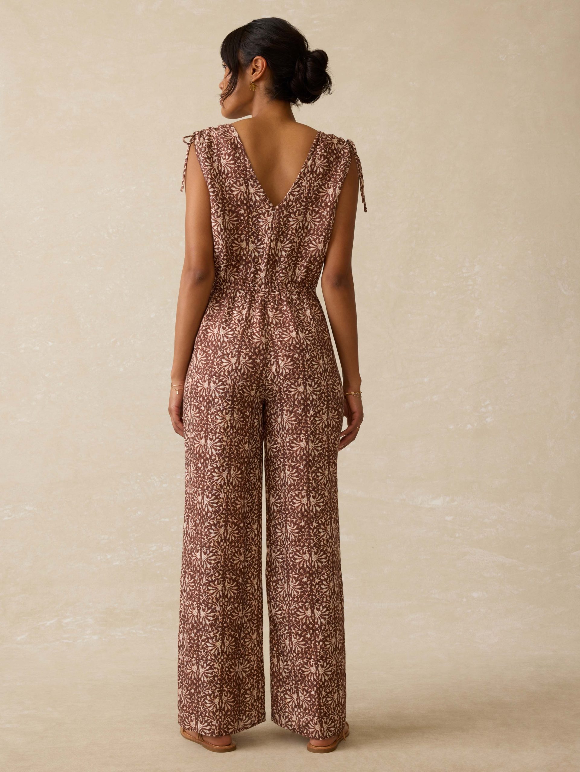This flowy linen jumpsuit moves with you—light, airy, and gathered in all the right places for a soft, draped silhouette that flatters without trying too hard. Graceful gathers give it just the right touch of romance, while the breathable linen keeps things cool and comfortable. Slip it on with sandals for a morning stroll or dress it up for dinner under the string lights.