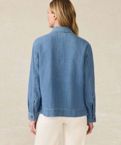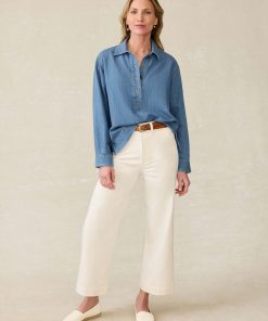 - Detail: Denim pull over top with half placket shirt, Button closure.
