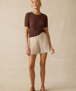 Faherty Women’s Miramar Linen Mini Rib Tee – Cocoa | Cocoa