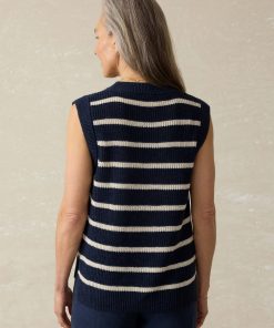 - Detail: Sleeveless crewneck tank with side slits. Loosely knit half cardigan stitch. Rib trims at neckline, armhole and bottom hem.