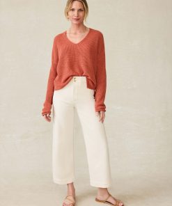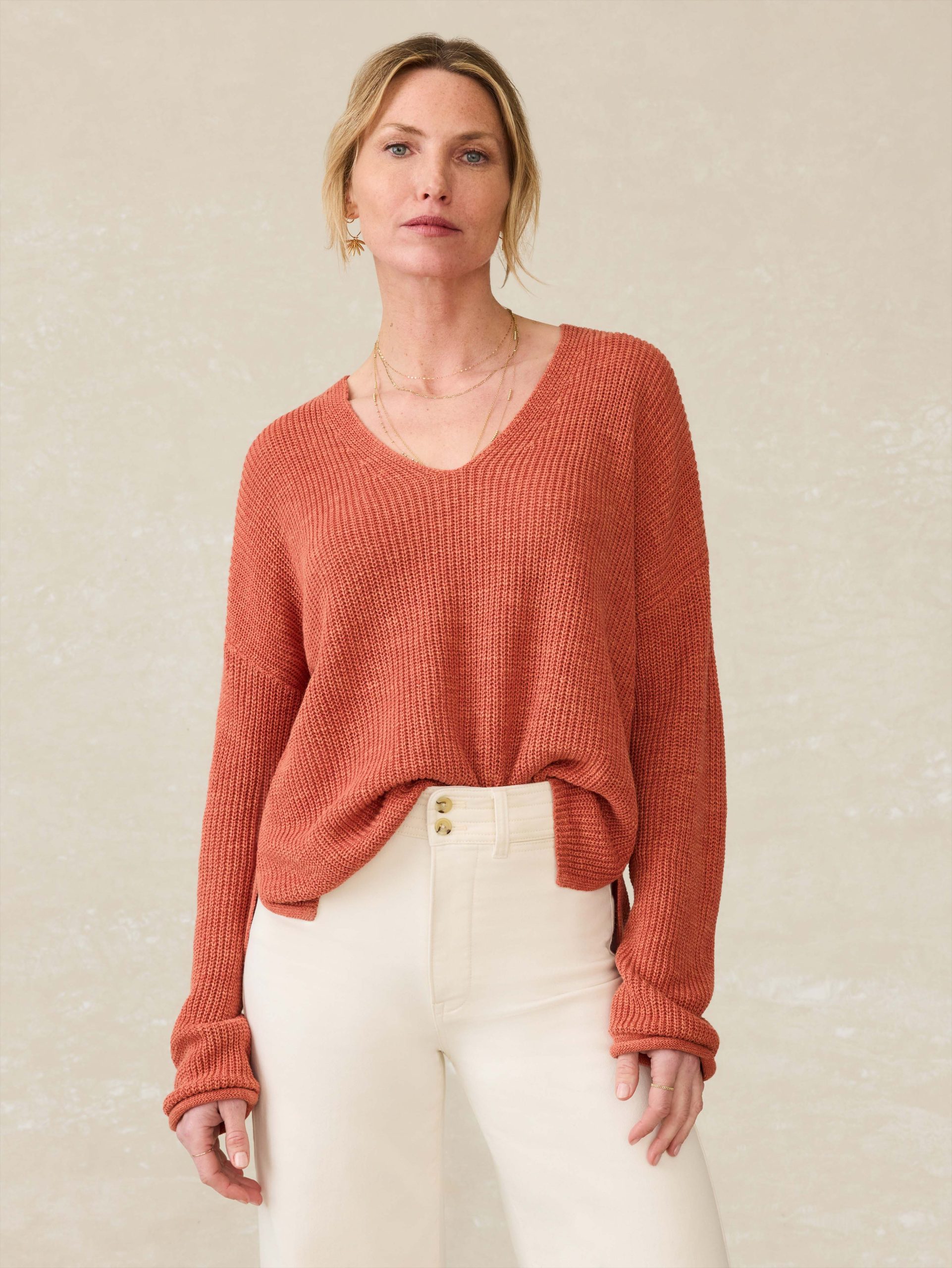 Warm enough for cool spring evenings but still light enough for sunny days, this striped polo is knit in an airy linen cotton blend that makes it the ideal layering piece. The textural, open stitch drapes beautifully with a slouchy, relaxed fit, making it our favorite no-fuss warm weather sweater.