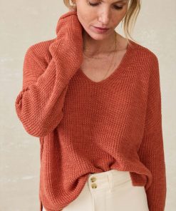 - Detail: Long sleeves. Loosely knit half cardigan stitch. Fashioning detail at neckline.