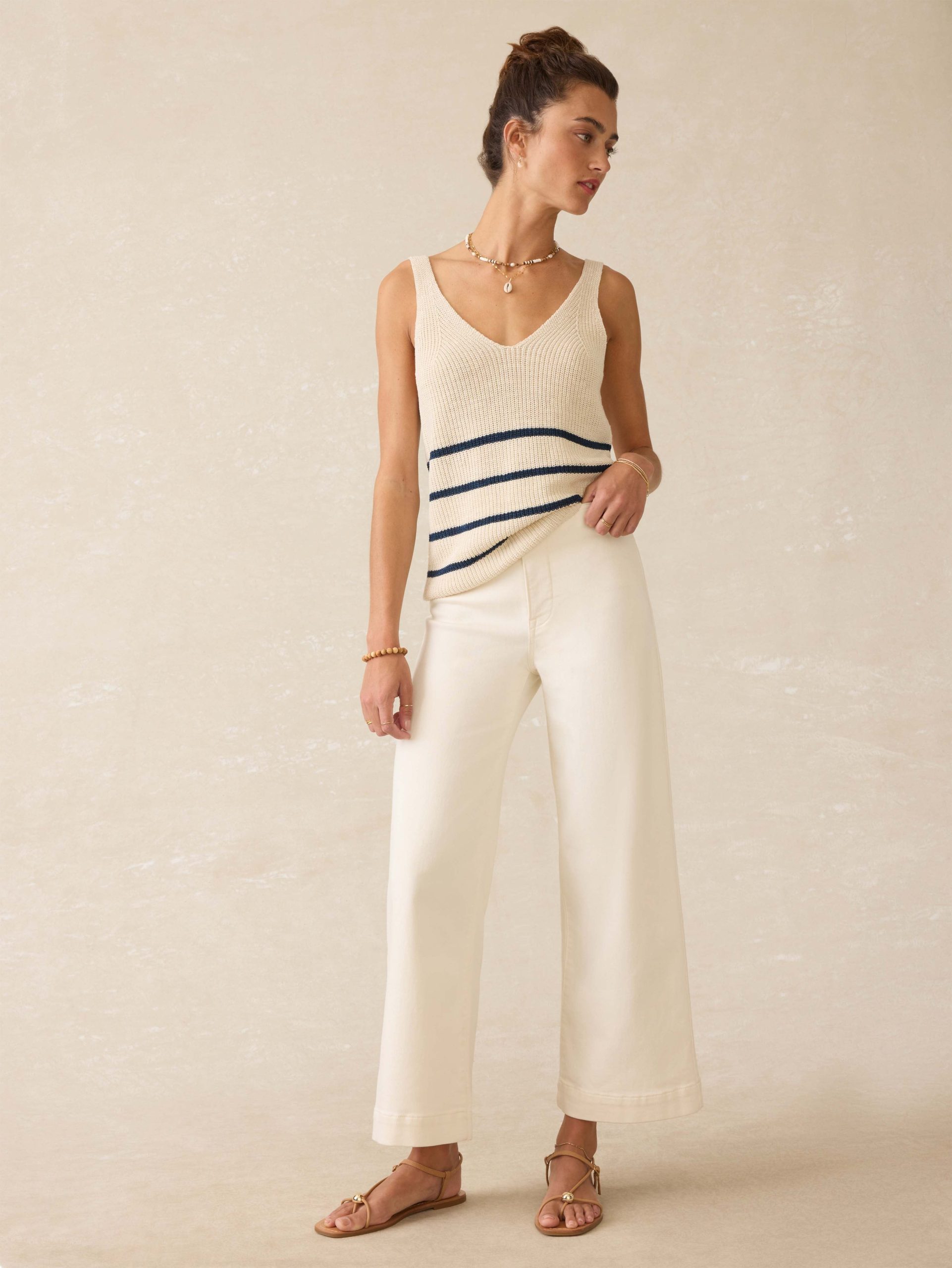Faherty Women’s Miramar Linen V-neck Tank – Sand Cove Stripe | Sand Cove Stripe