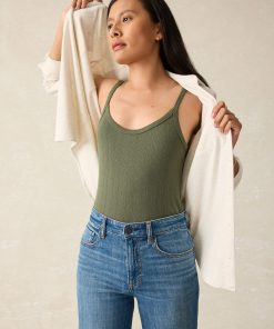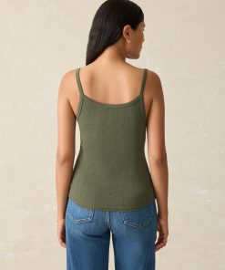 - Detail: Camisole tank with pique rib trim detail.