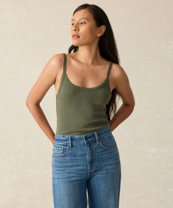 - Detail: Camisole tank with pique rib trim detail.