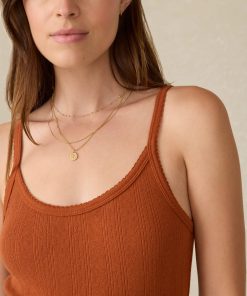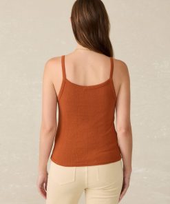 - Detail: Camisole tank with pique rib trim detail.