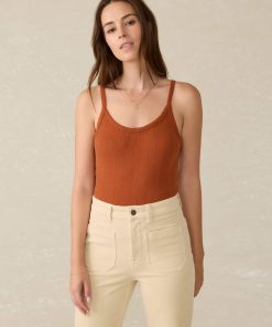 - Detail: Camisole tank with pique rib trim detail.