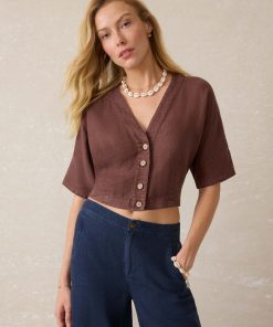Faherty Women’s Palma Linen Avery Top – Cocoa | Cocoa