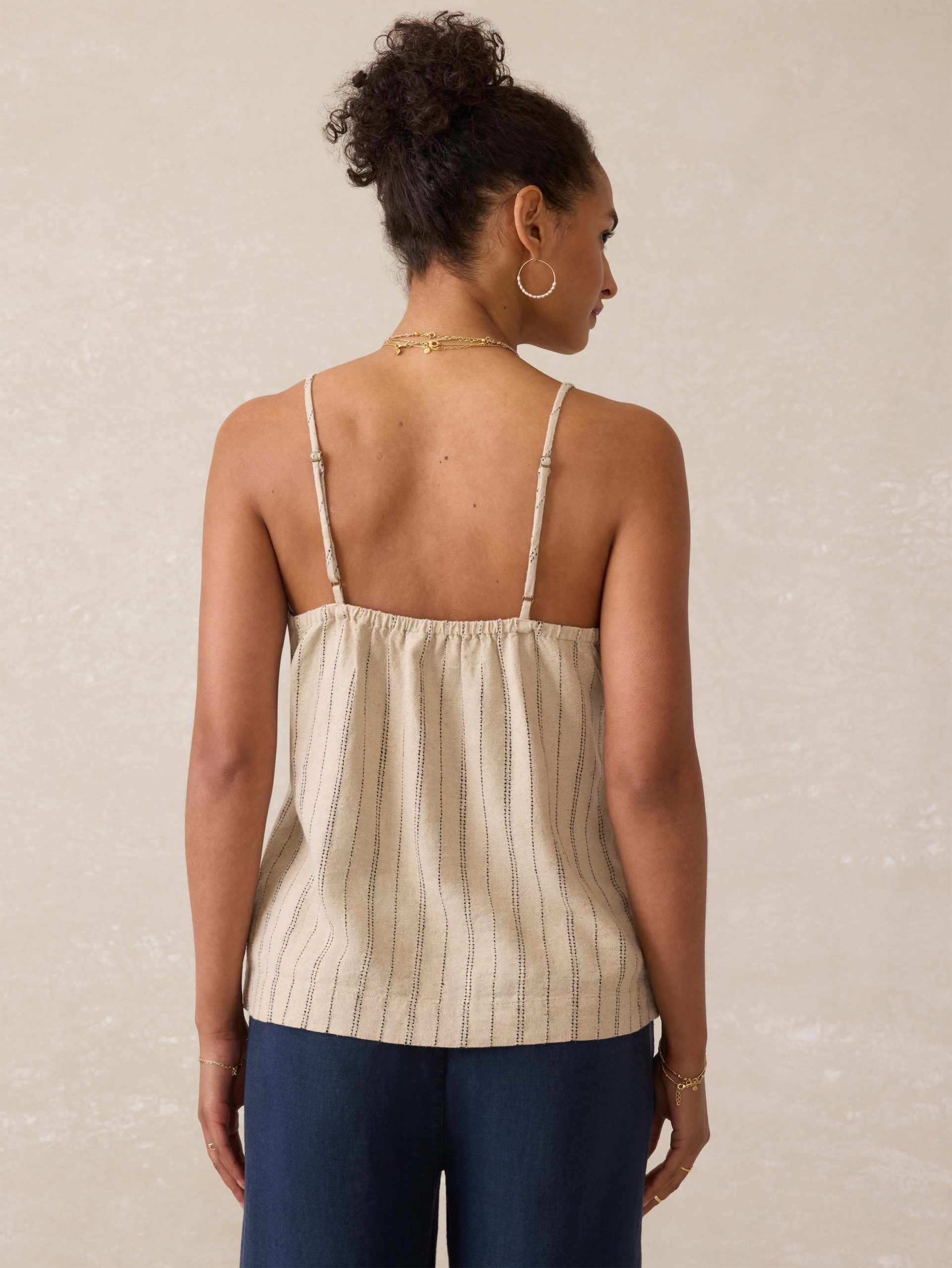 Made from a lightweight blend of linen and LENZING™ECOVERO™, a lower-impact material, this tank is soft, breathable, and naturally cool to the touch. Adjustable straps and encased elastic along the back opening ensure a just-right fit—perfect for sunny days and easy layering.