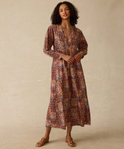 Lightweight, breathable, and effortlessly charming—this cotton cover-up is your go-to from sunup to sundown. Featuring a vintage-inspired patchwork print and whimsical tassel ties at the waist, it’s finished with shell buttons at the cuffs for an easy, polished touch. Just toss it on and go.