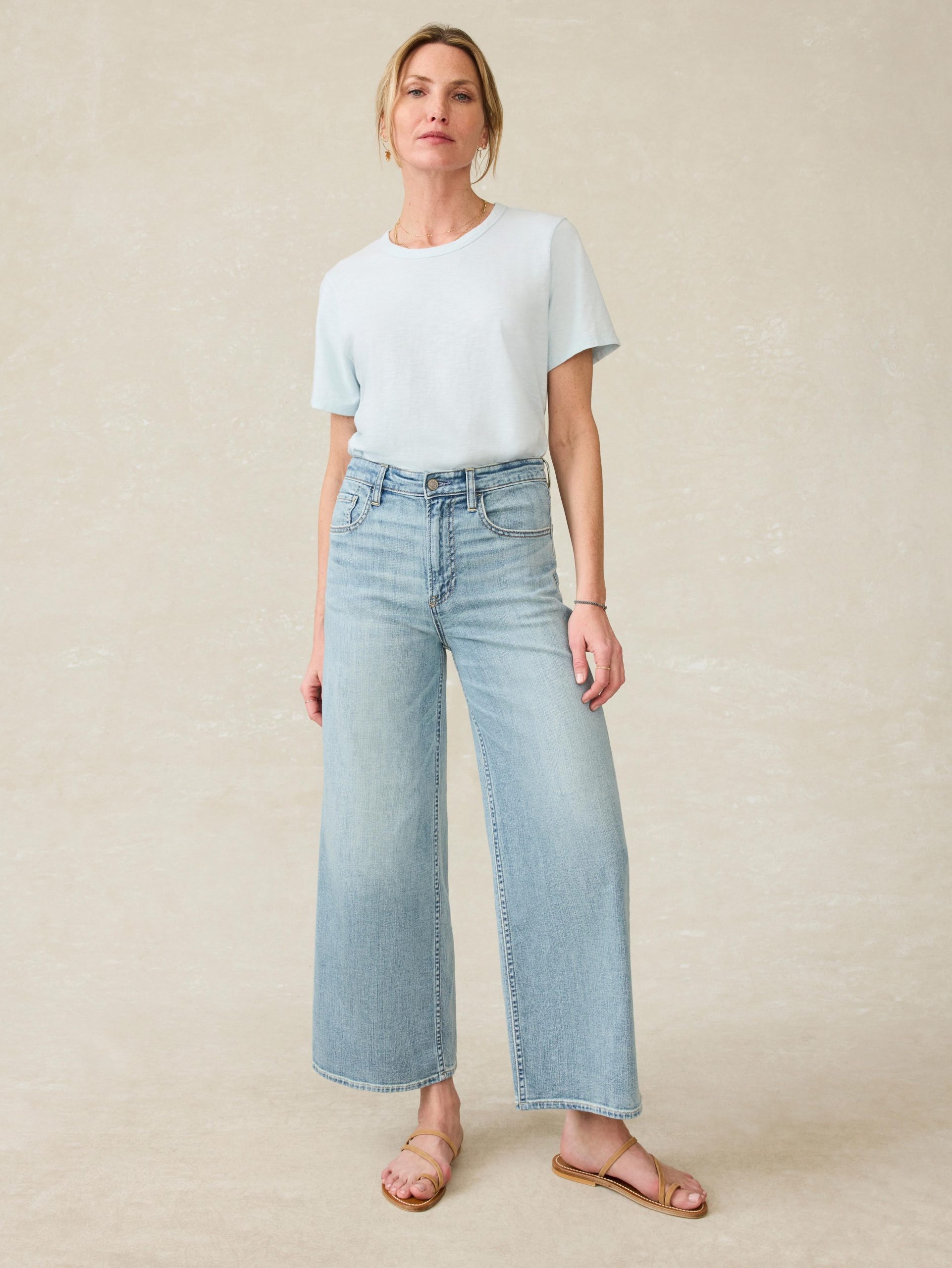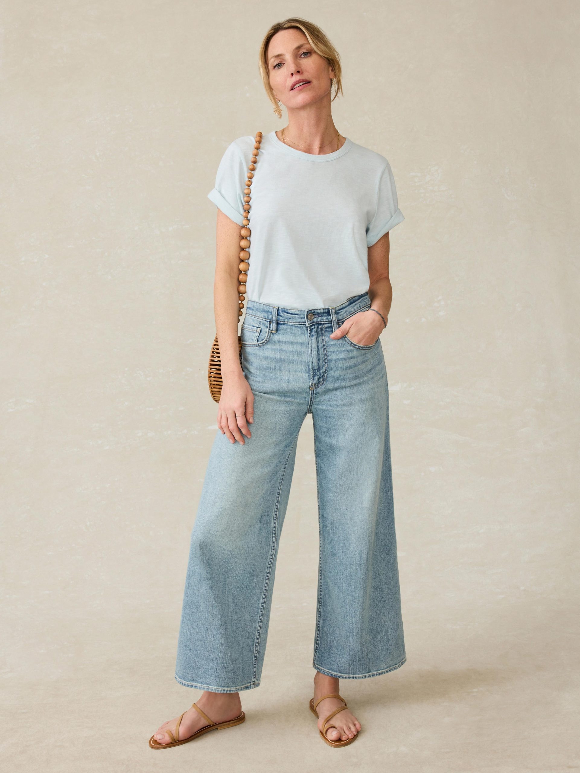 These new feather-light jeans are an ode to the most comfortable, broken-in denim you’ve ever had. Think super soft, stretchy, and breezy with a laidback drape that moves with you. Constructed with a high waist and wide leg, its easygoing essence was made for beachside strolls and weekend getaways in mind.