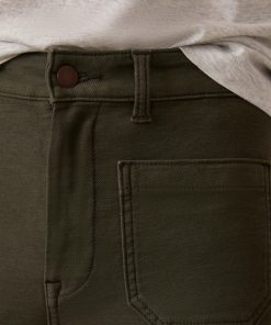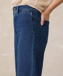- Detail: Indigo stretch terry slim wide leg pants with patched front and back pockets. Regular stretch. Ankle length