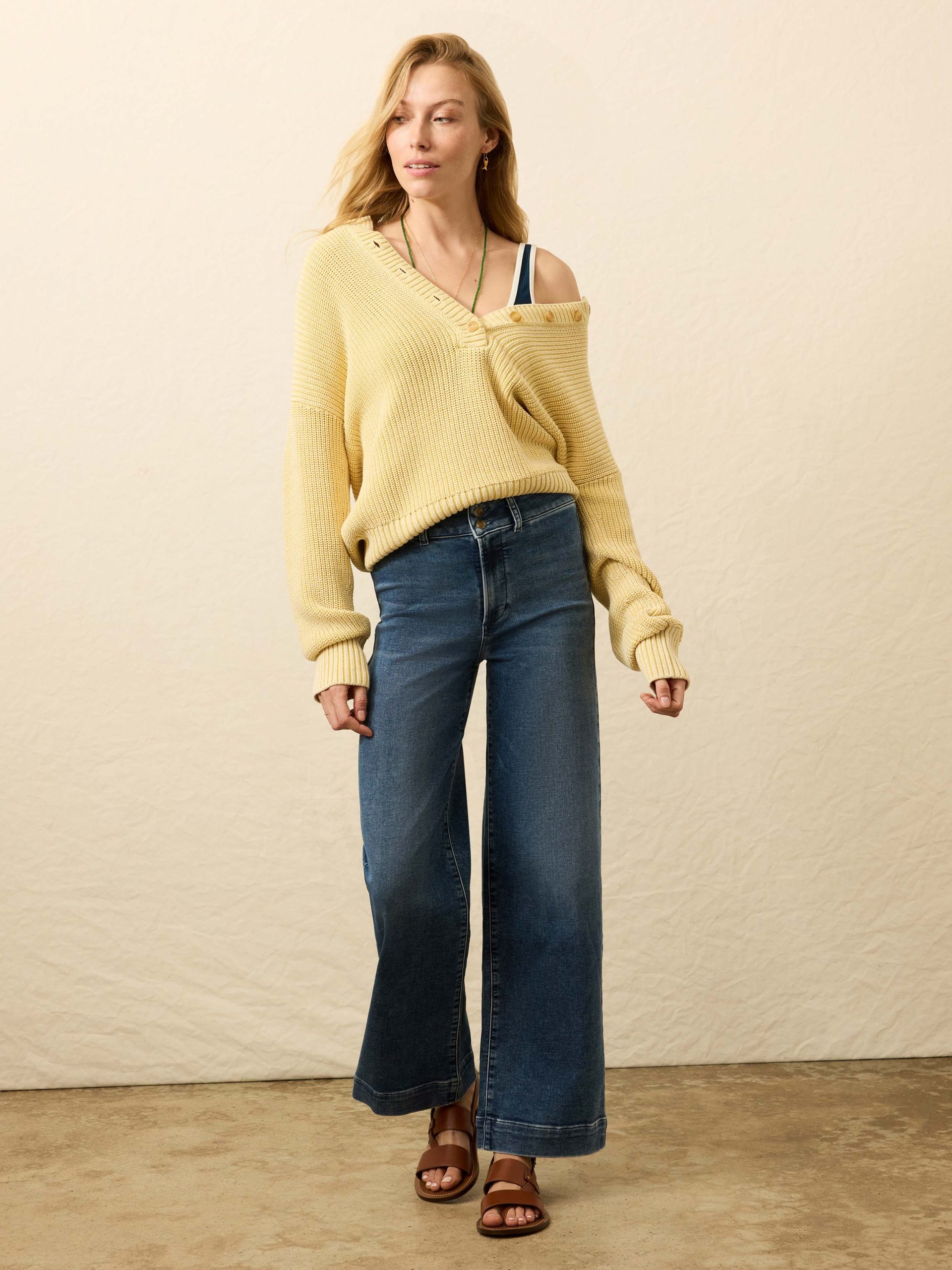 This fisherman henley is crafted from midweight cotton with a classic textured stitch that adds depth without feeling bulky. It delivers the perfect amount of warmth for cool mornings and breezy evenings, while the sun-faded hues evoke the ease of sun-soaked days. With its relaxed fit and soft feel, it’s made for slow weekends, unwinding at home, or wherever comfort calls.